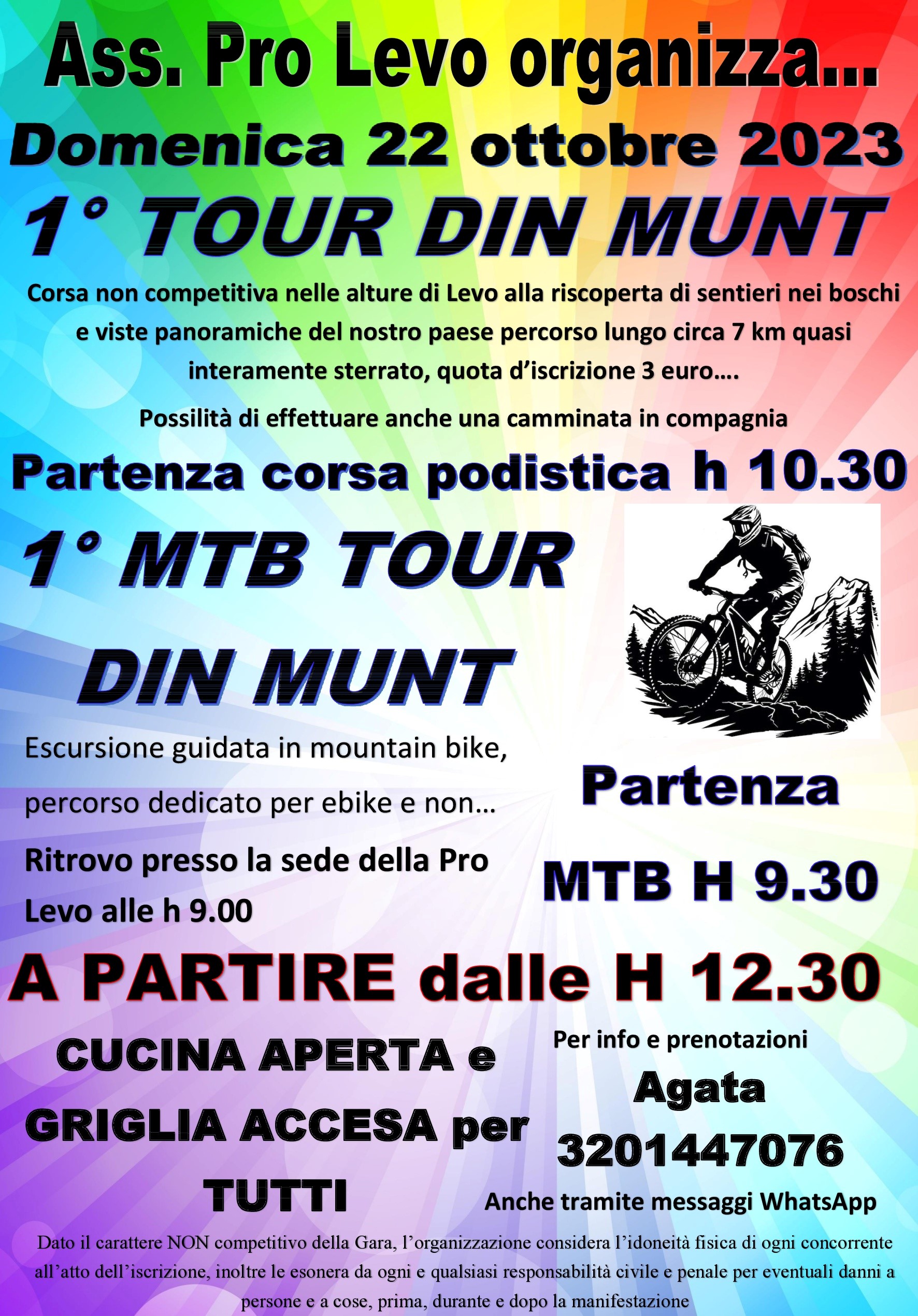 Per info e prenotazioni: Ass.ne Pro Levo - Agata tel. 320 1447076