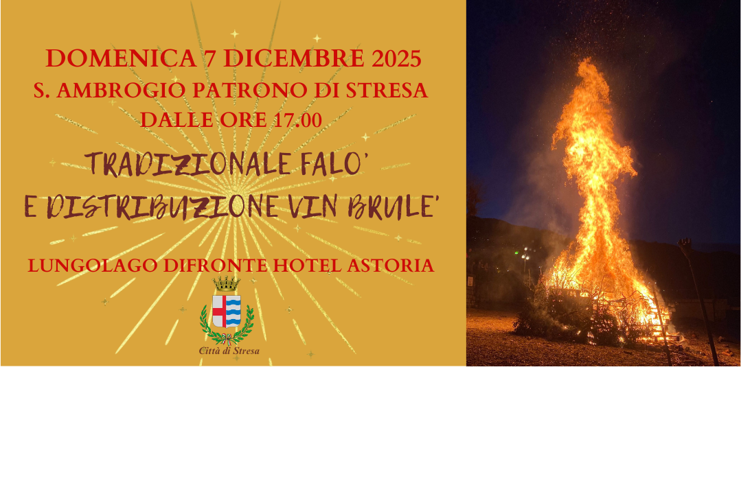 Ore 17.00 – Tradizionale Falò sul lungolago di fronte l’Hotel Astoria.